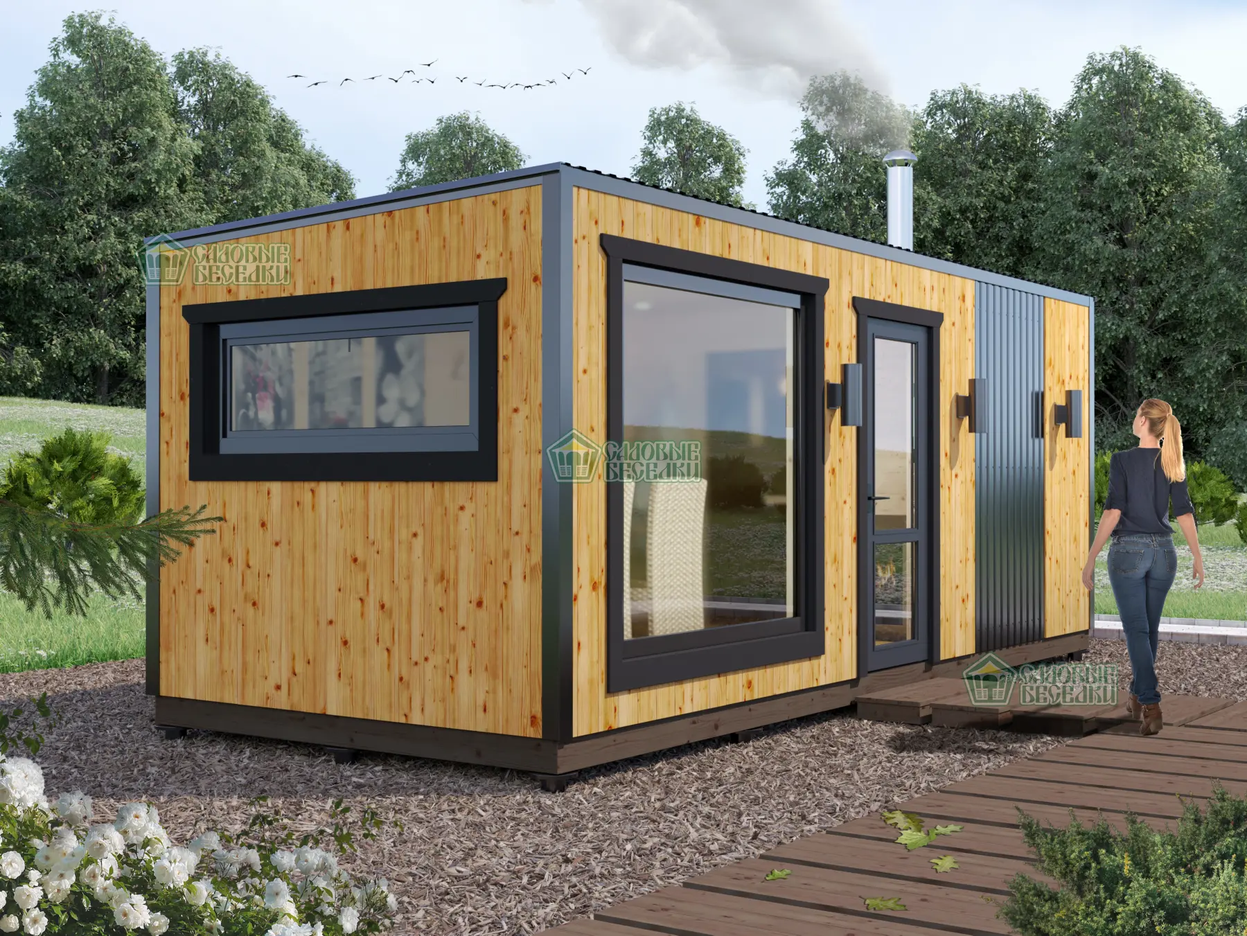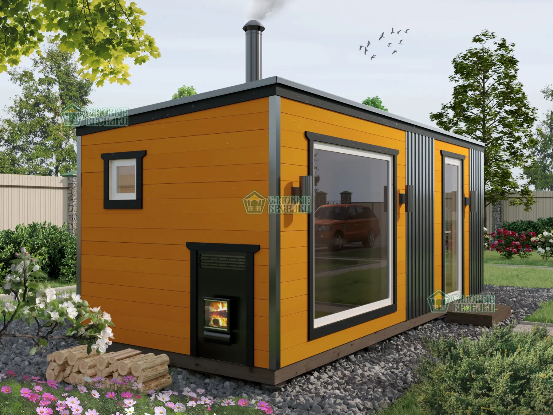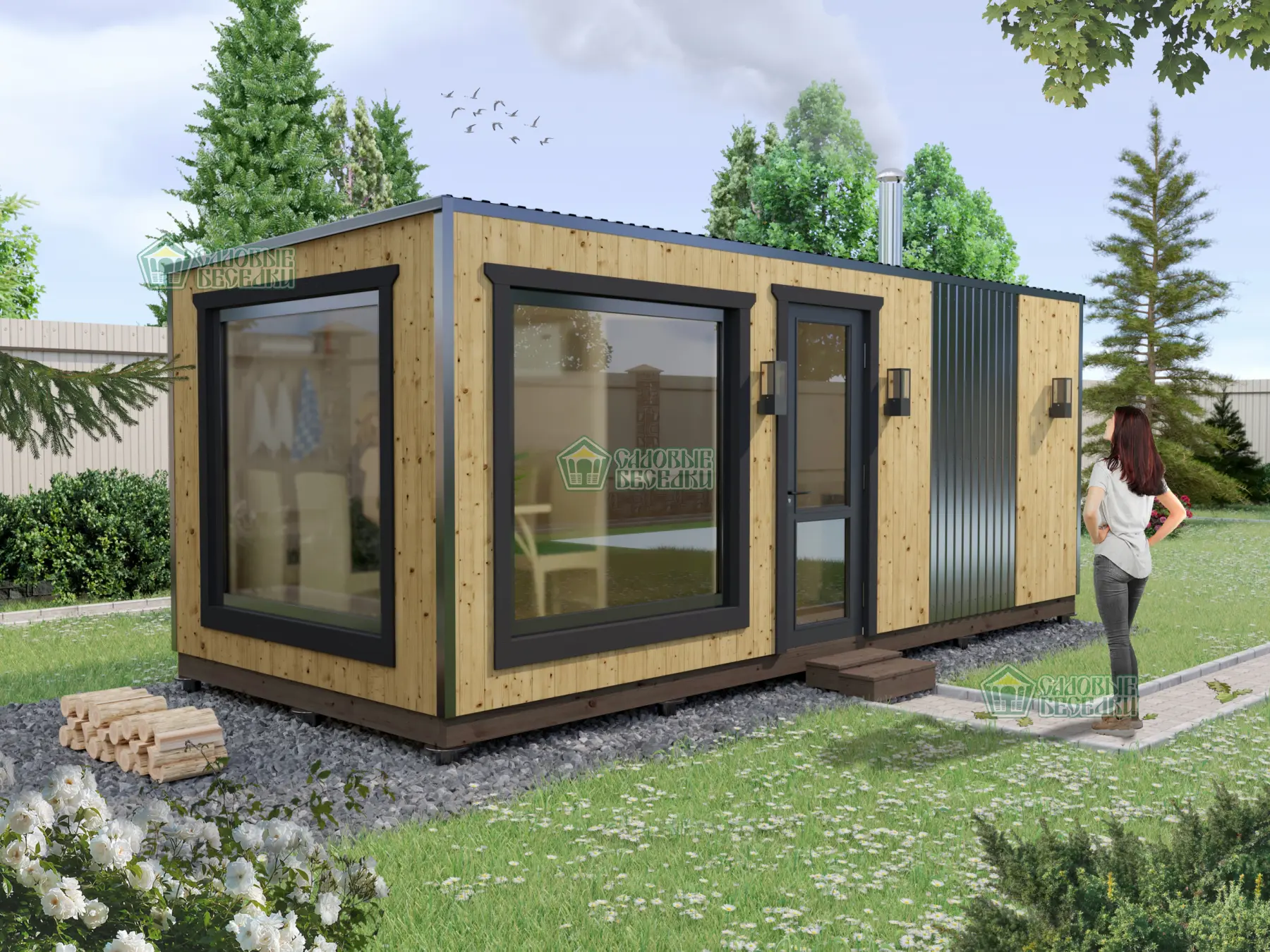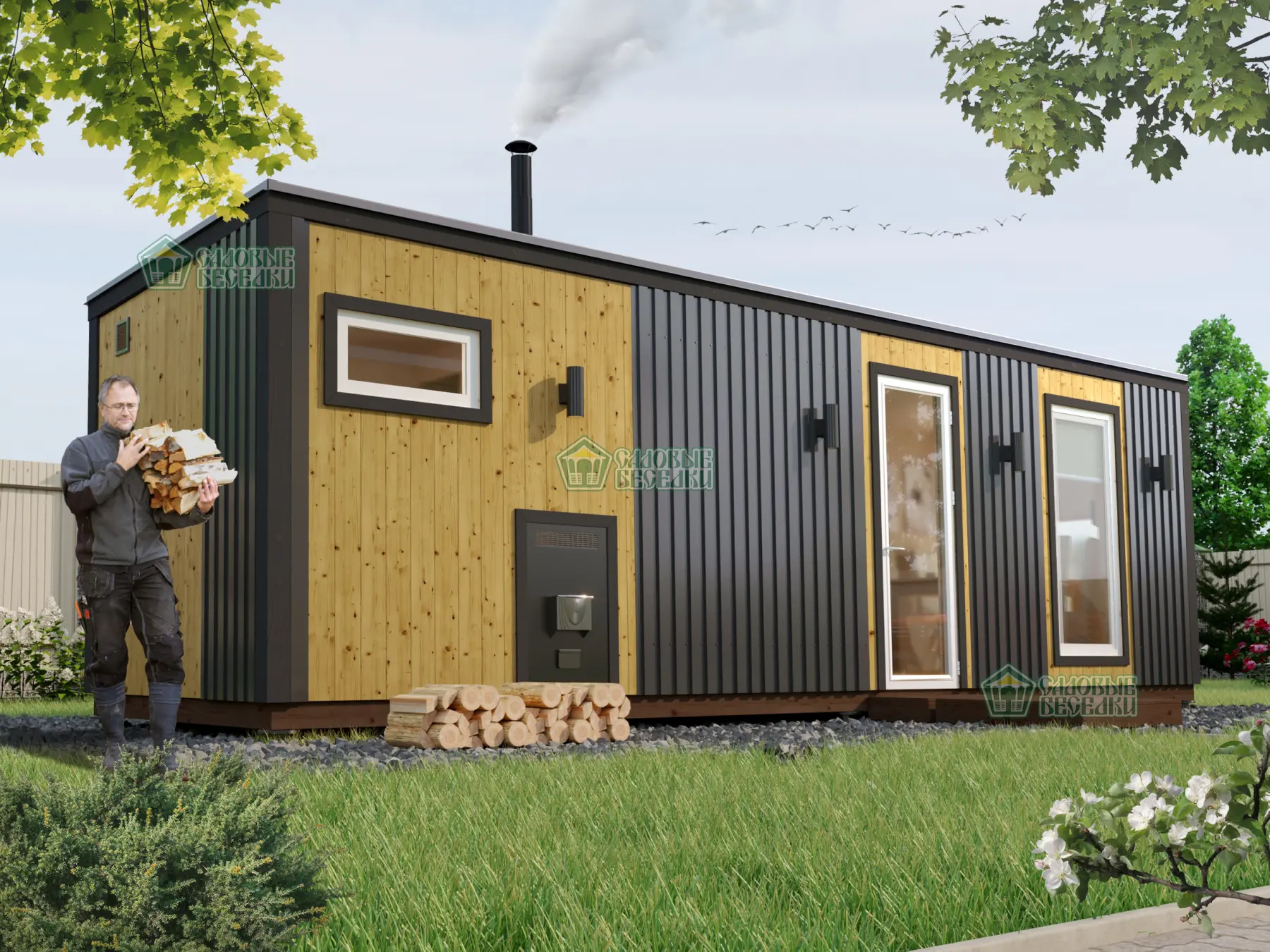 Баня ”Black Onyx” 2,5х7 м с панорамными окнами