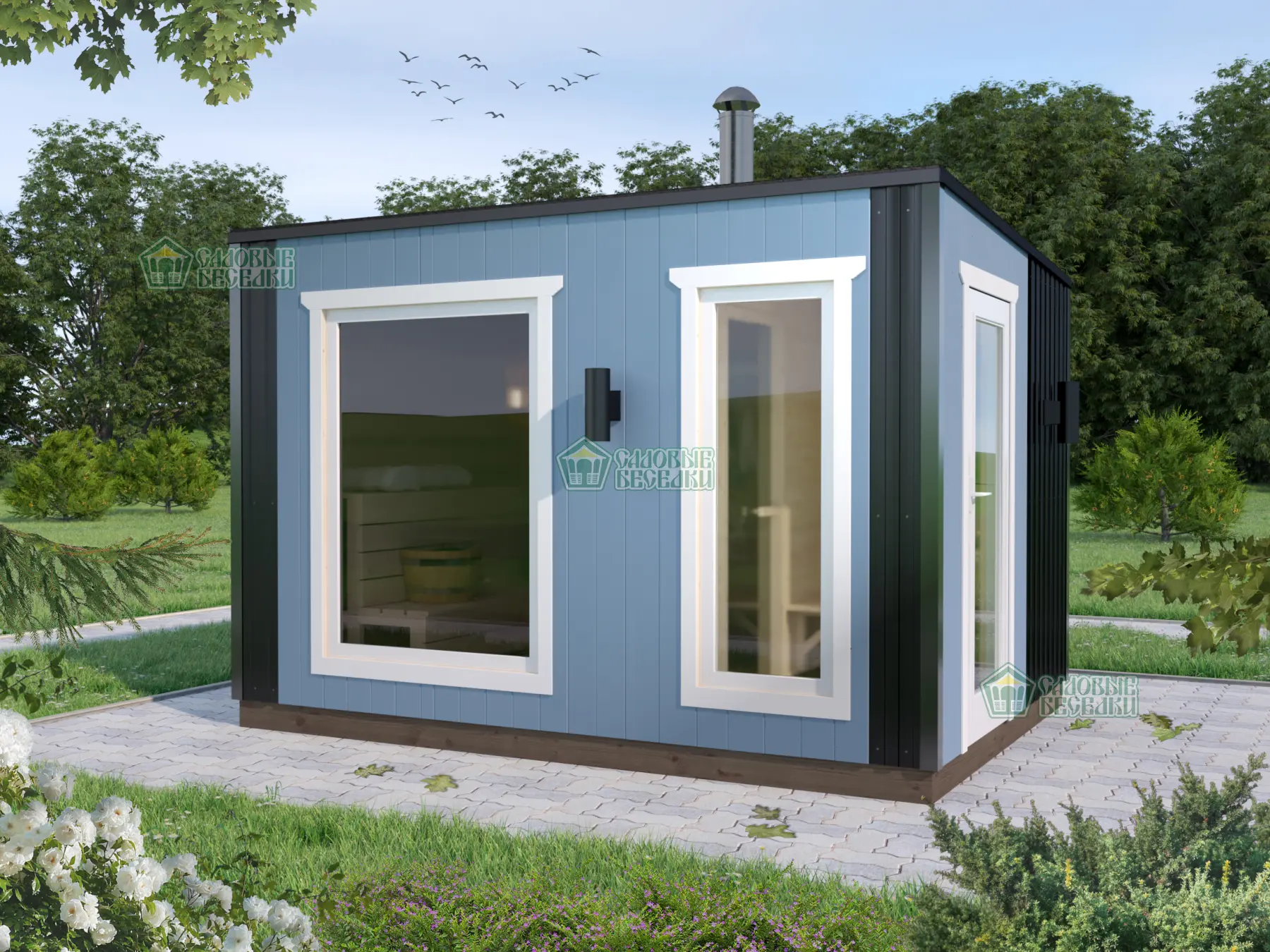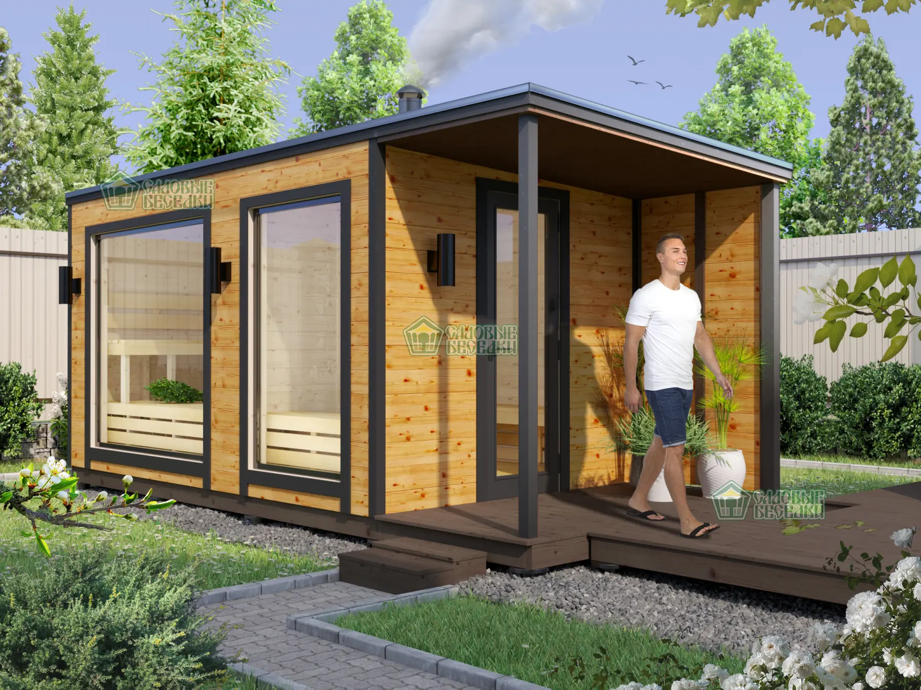 Баня ”Скандинавия” с панорамными окнами и душевой