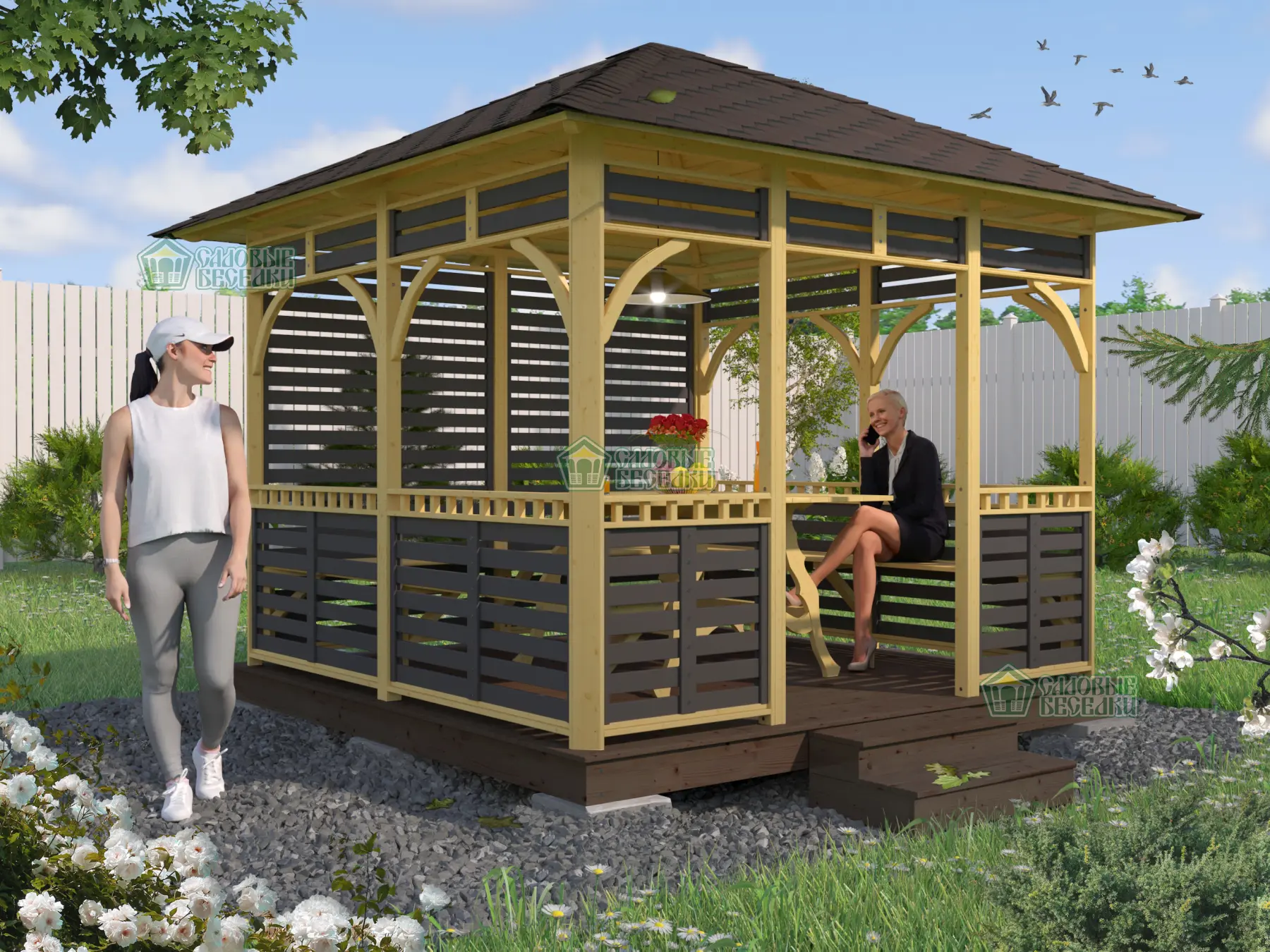 Беседка квадратная "Оникс" 2,5 * 2,5 по акции Все включено