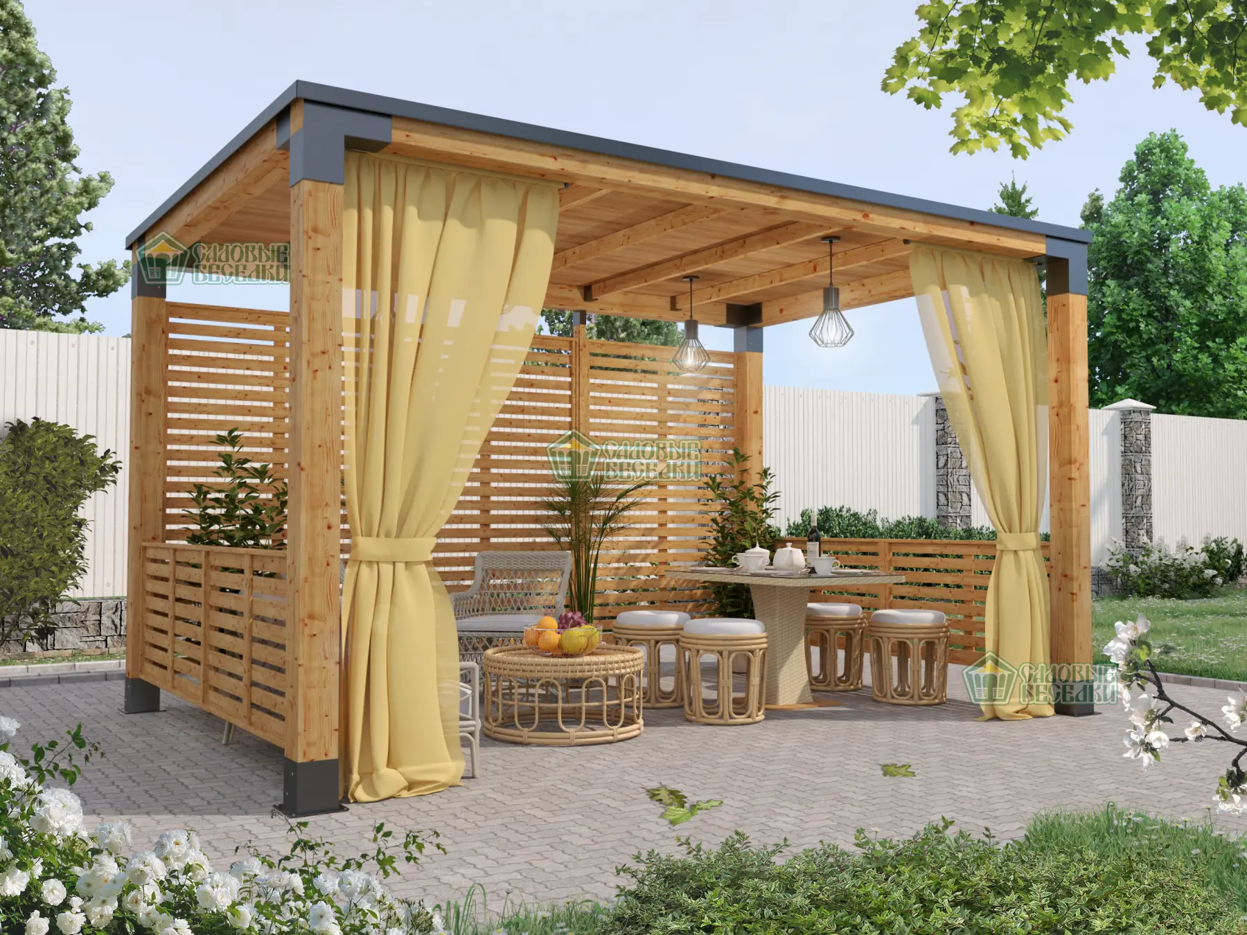 Беседка из бруса в стиле «Лофт» 3х3 по акции все включено