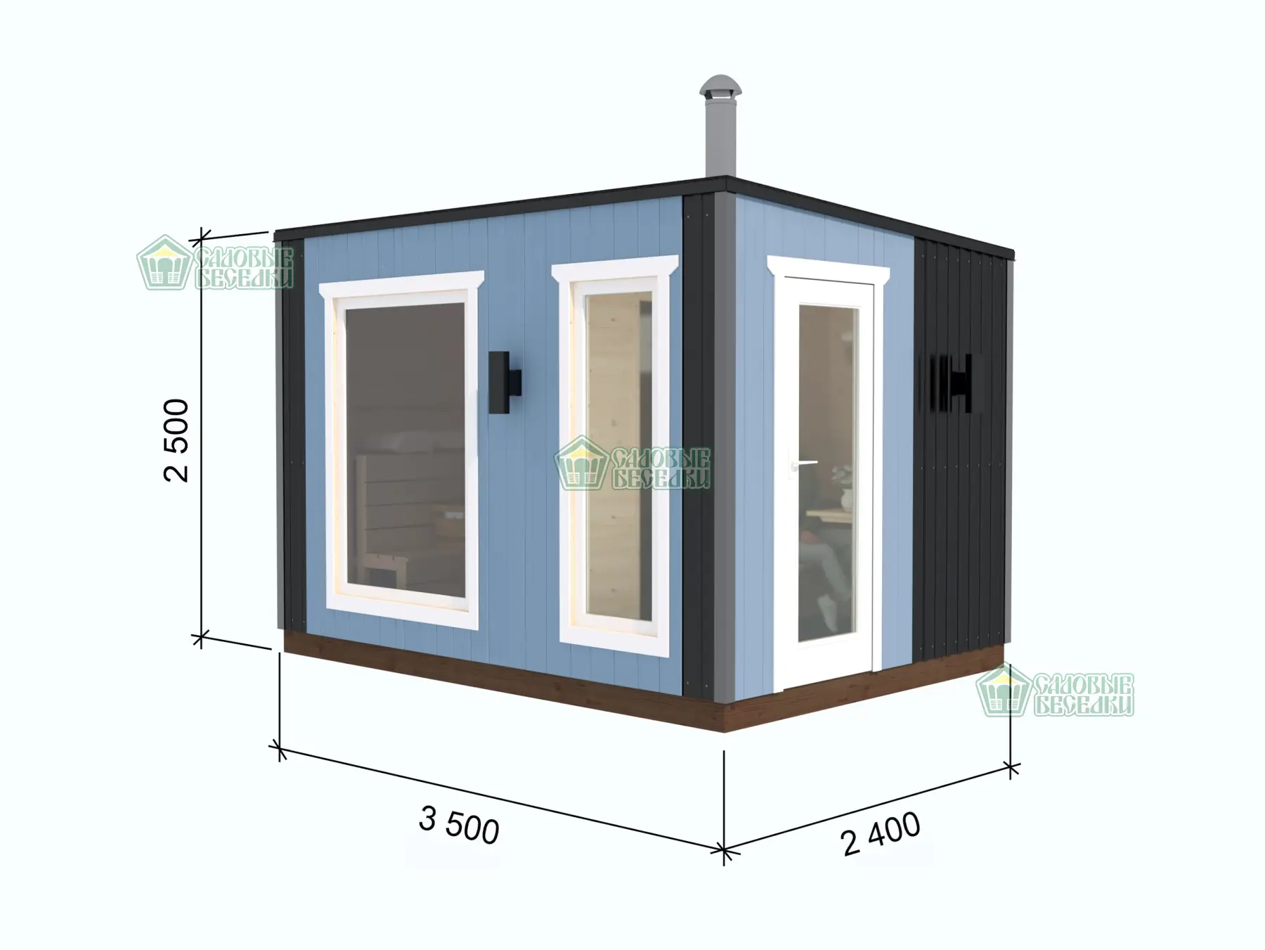 Компактная баня мини с двумя отделениями. Рассчитана на размещение до 3-х человек.