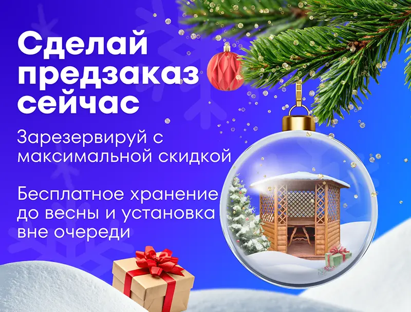 В зимний период мы изготовим, окрасим, упакуем и сохраним до весны Вашу беседку и после схода снега установим ее на Вашем участке.