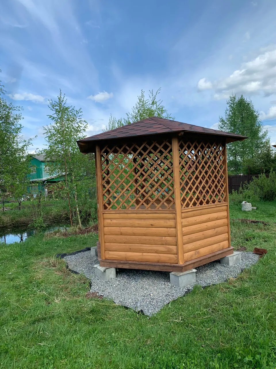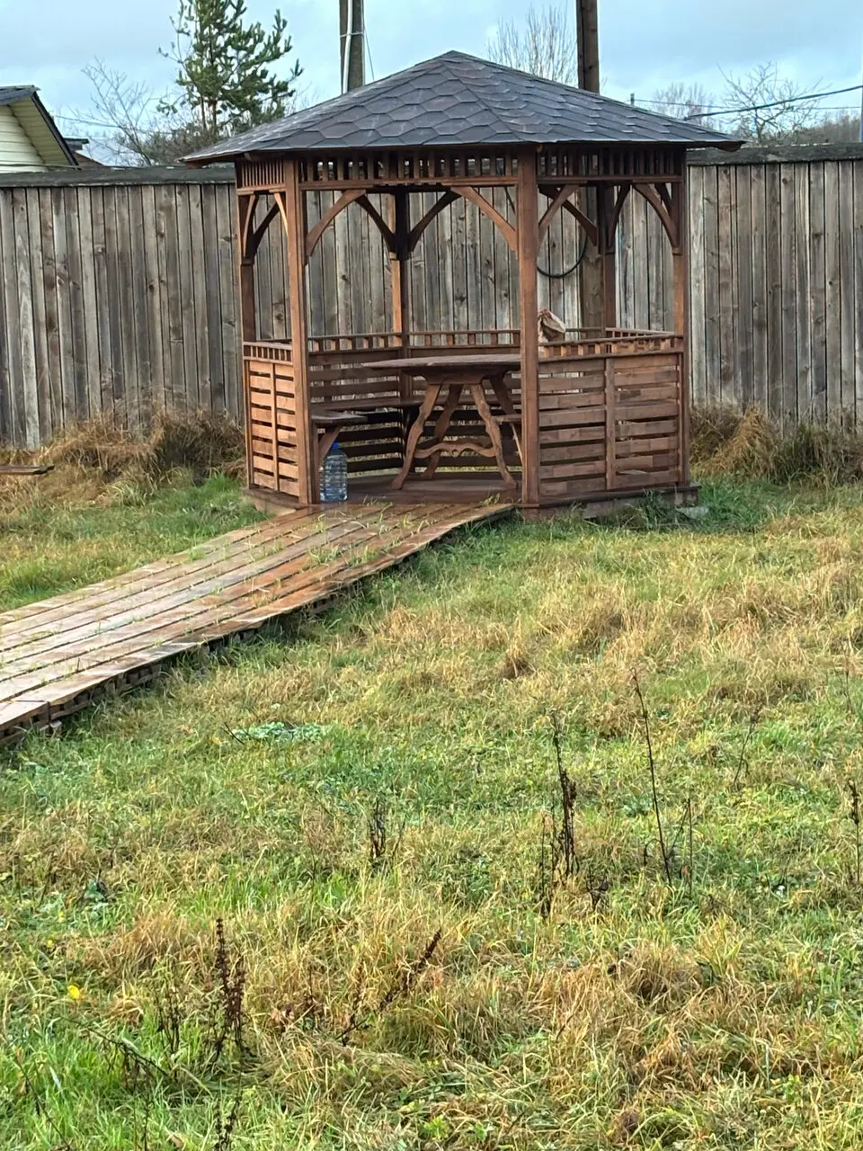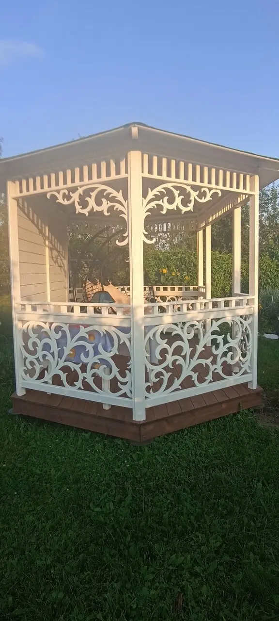 Наша семья благодарит всю команду "Садовые беседки", начиная с менеджера Евгения,и,заканчивая мастерами по сборке Егора и Кирилла, за отлично выполненную работу!Теперь наш участок украшает вот такая ажурная красота! Легко заказывать, никуда не нужно ехать, всё было сделано дистанционно, сроки и условия соблюдены.В нашем случае была внесена предоплата. Беседку установили на сваи, это было наше пожелание.Собирали часов 6.После сборки участок был абсолютно чистым! Ребята-молодцы весь строительный мусор прибрали.Этой компании однозначно можно доверять!Присматриваюсь теперь к аркам-перголам) Рекомендую всем " Садовые беседки "!