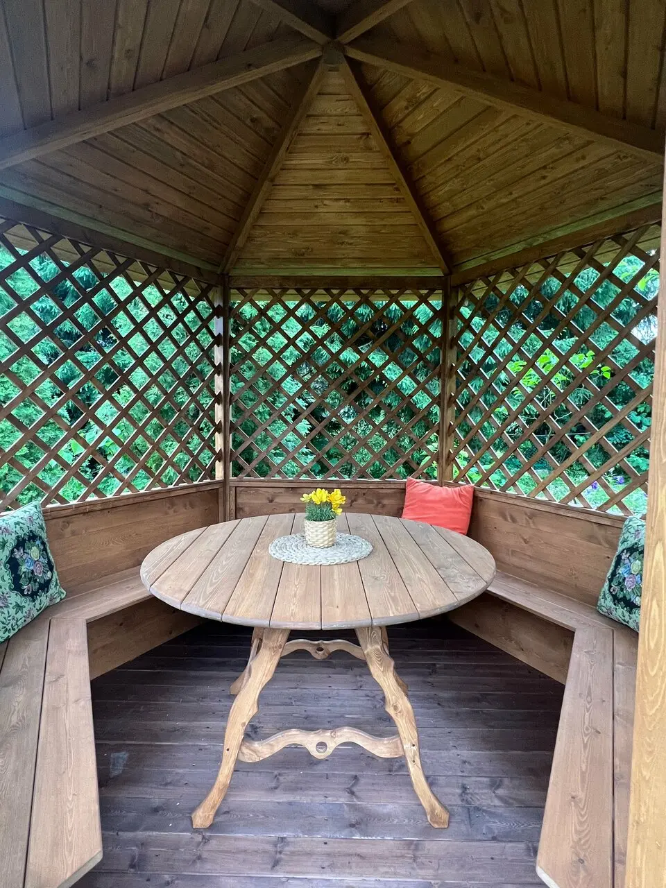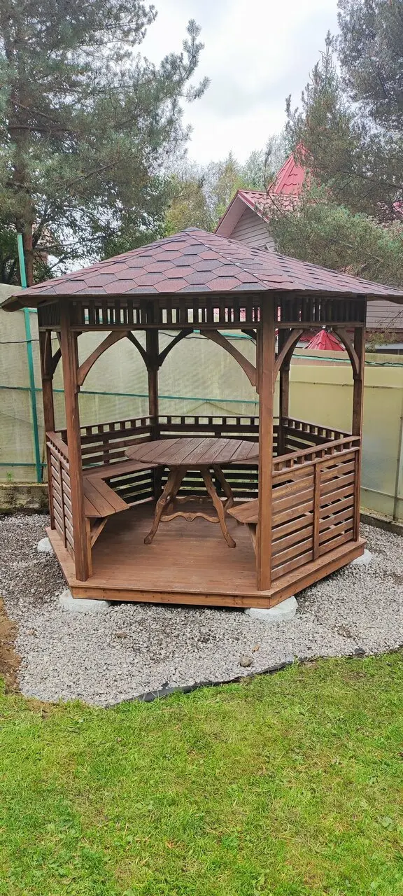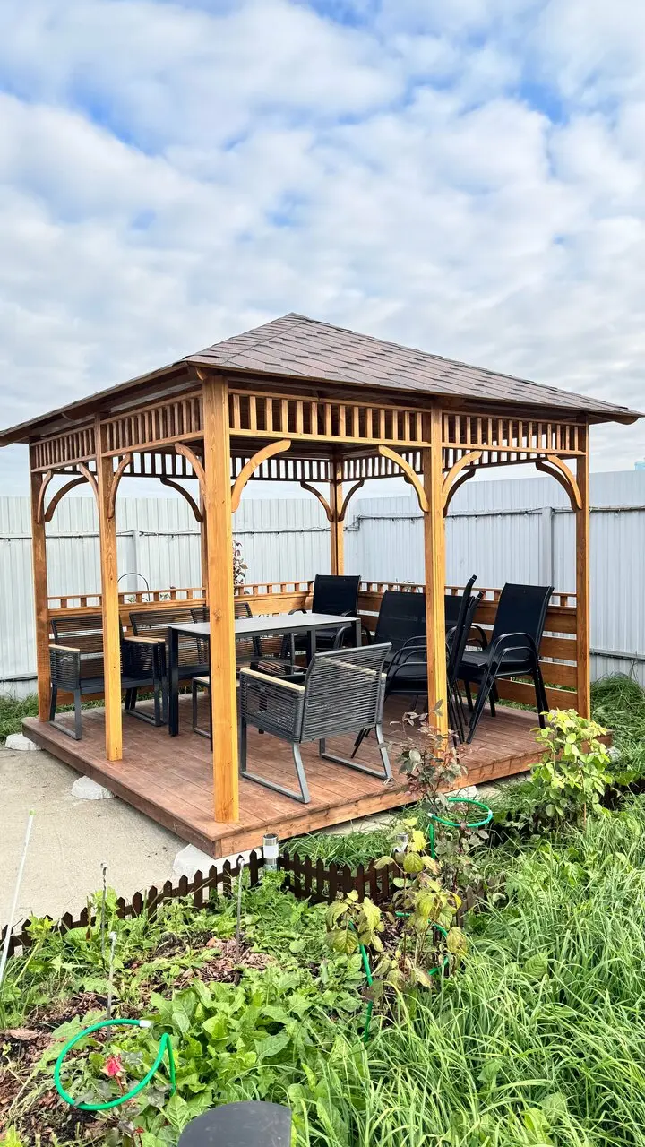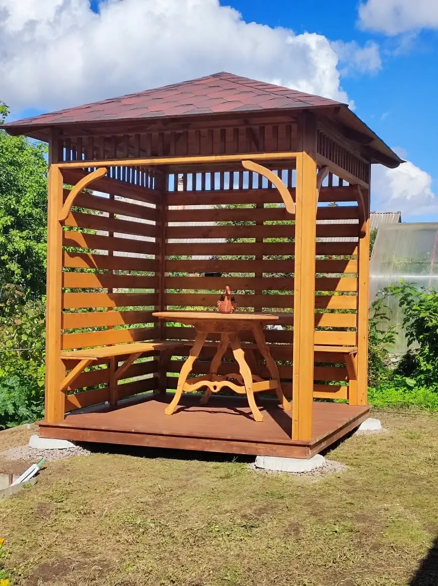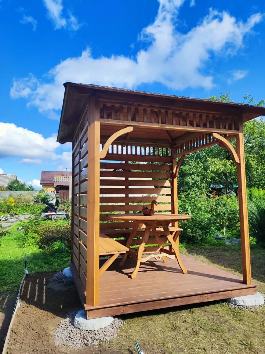 Решение установить беседку родилось спонтанно. В интернете увидела компанию Садовые беседки. Менеджер Виктория быстро и чётко ответила на всё вопросы, я съездила на площадку, посмотрела качество, договорились. Бригадир Алексей по видео оценил масштаб работ на участке. Беседку привезли точно по времени, как договаривались. Три часа работы и мы обладатели уютного уголка для чаепития и вечерних посиделок. Особенно порадовало, что попала на акцию компании и доставка с установкой входили в стоимость беседки. Большое спасибо. Ребята профессионалы, ответственно подходящие к своей работе. Однозначно рекомендую данную компанию