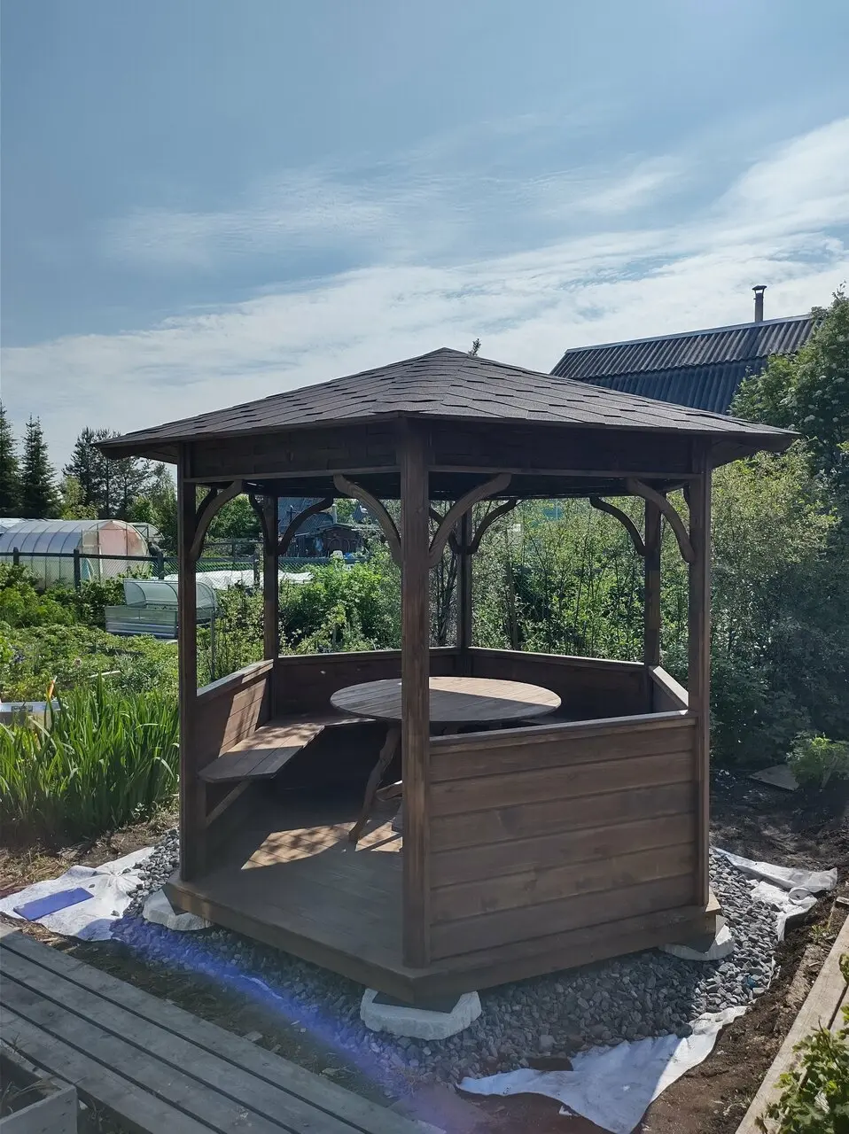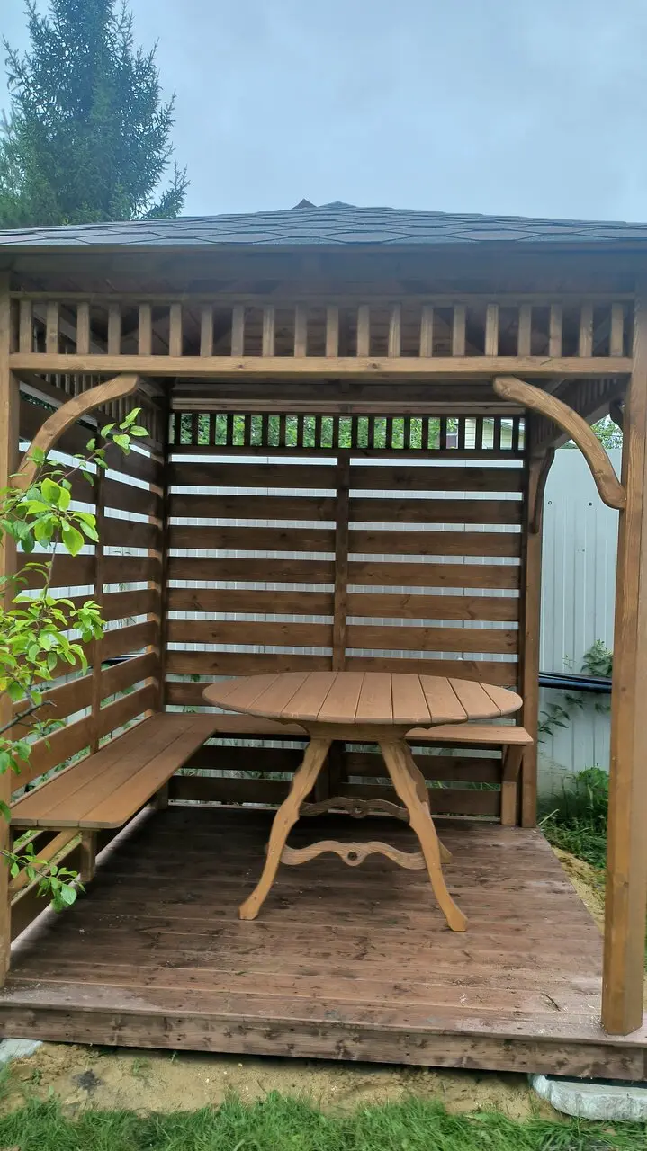 Подводя итог, наша беседка стала прекрасным дополнением дачного участка, обеспечив возможность комфортного отдыха и общения с близкими людьми. Хотим выразить огромную благодарность нашему менеджеру Виктории, которая была готова ответить на все наши вопросы и помогла с выбором оптимального варианта установки беседки и типа беседки и бригаде, которая так профессионально и быстро собрала нам беседку