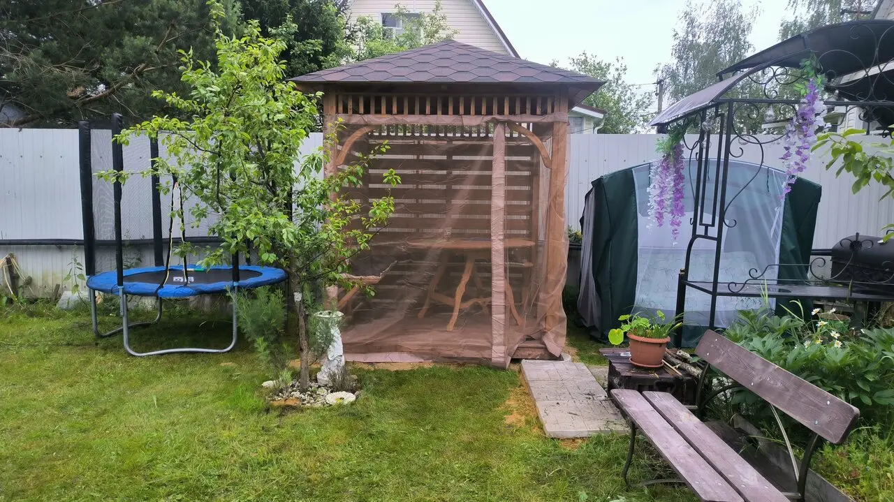 Заказала беседку на дачу: темная сетка. Сделали все оперативно, качественно и быстро. Все убрали. Нигде не обманули. Беседка хорошая