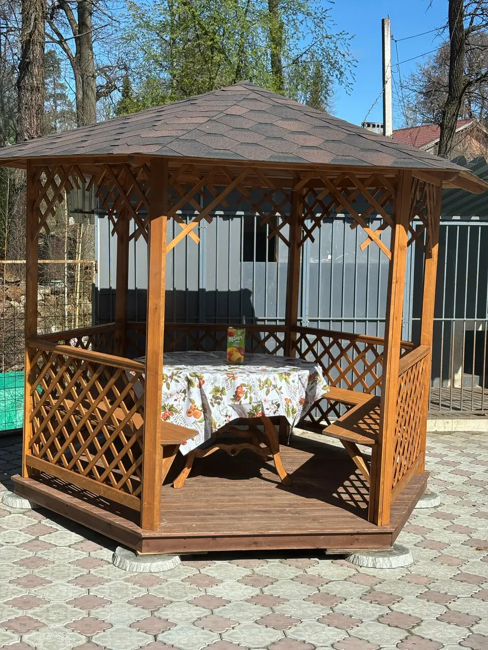 Нашей семье недавно посчастливилось обзавестись прекрасной деревянной беседкой на даче — местом, где мы проводим самые уютные вечера и собираемся всей семьей на чай и разговоры.