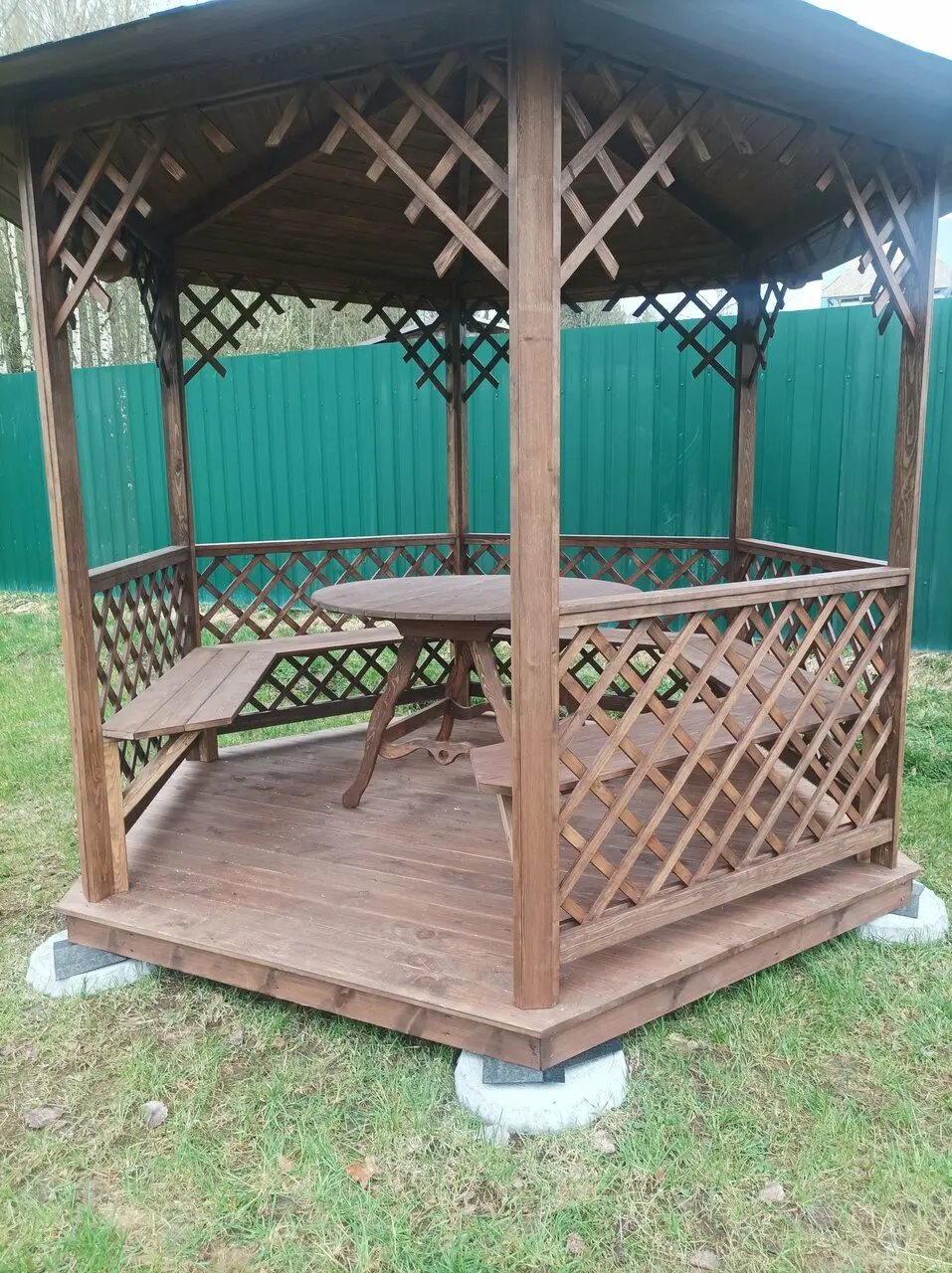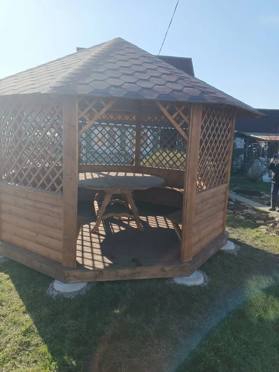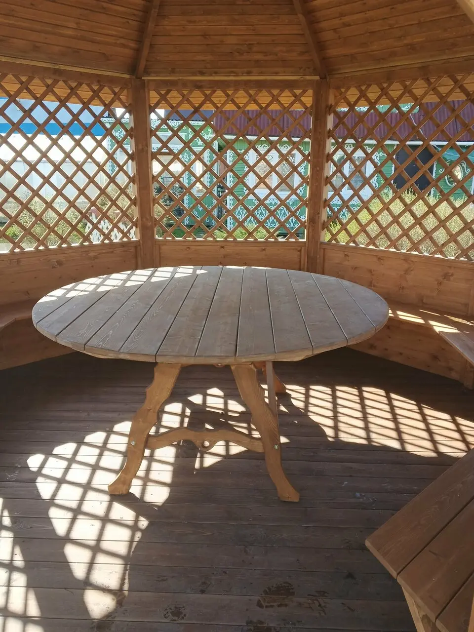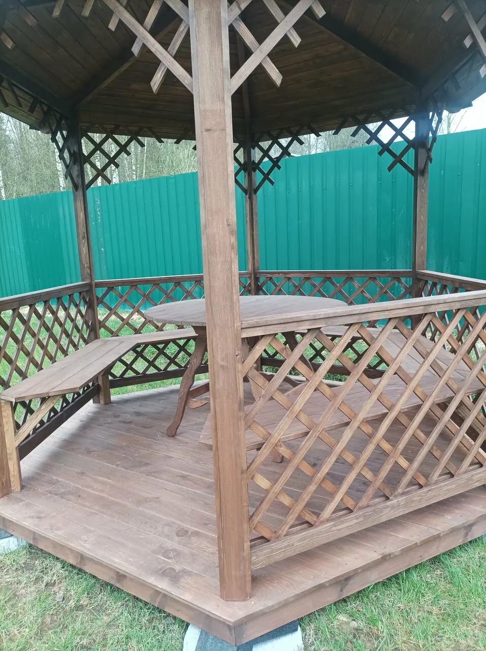 Просто чудесную беседку нам сделали, спасибо большое! Прочную, качественную, красивую, очень радуемся всей деревней. И домик для колодца!