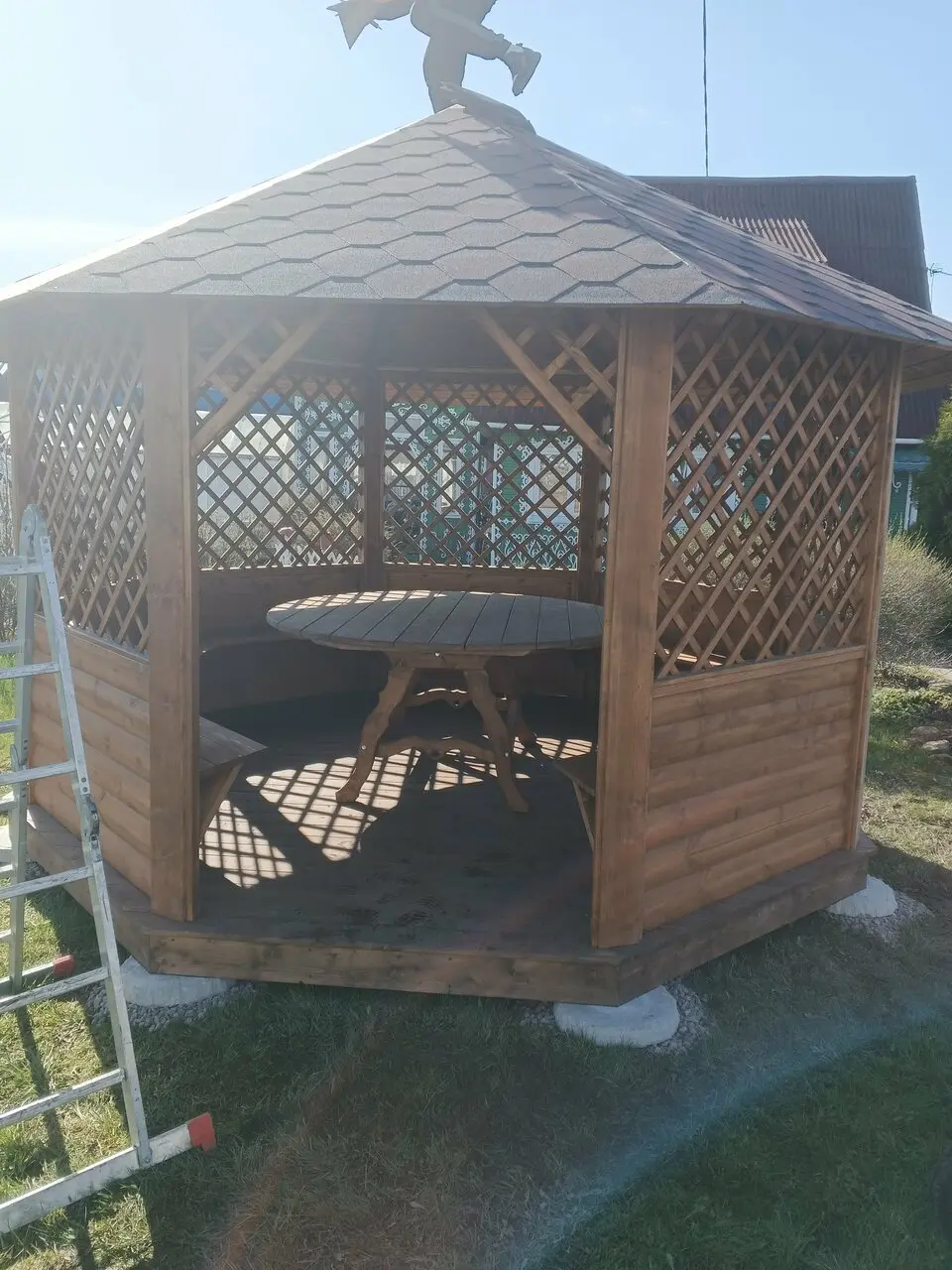 Заказали беседку. Благодарим менеджера Викторию за подробную информацию по подбору и строительству беседки. Также благодарим Алексея и Александра за быстрый и качественный монтаж. Рекомендуем компанию при выборе беседки.