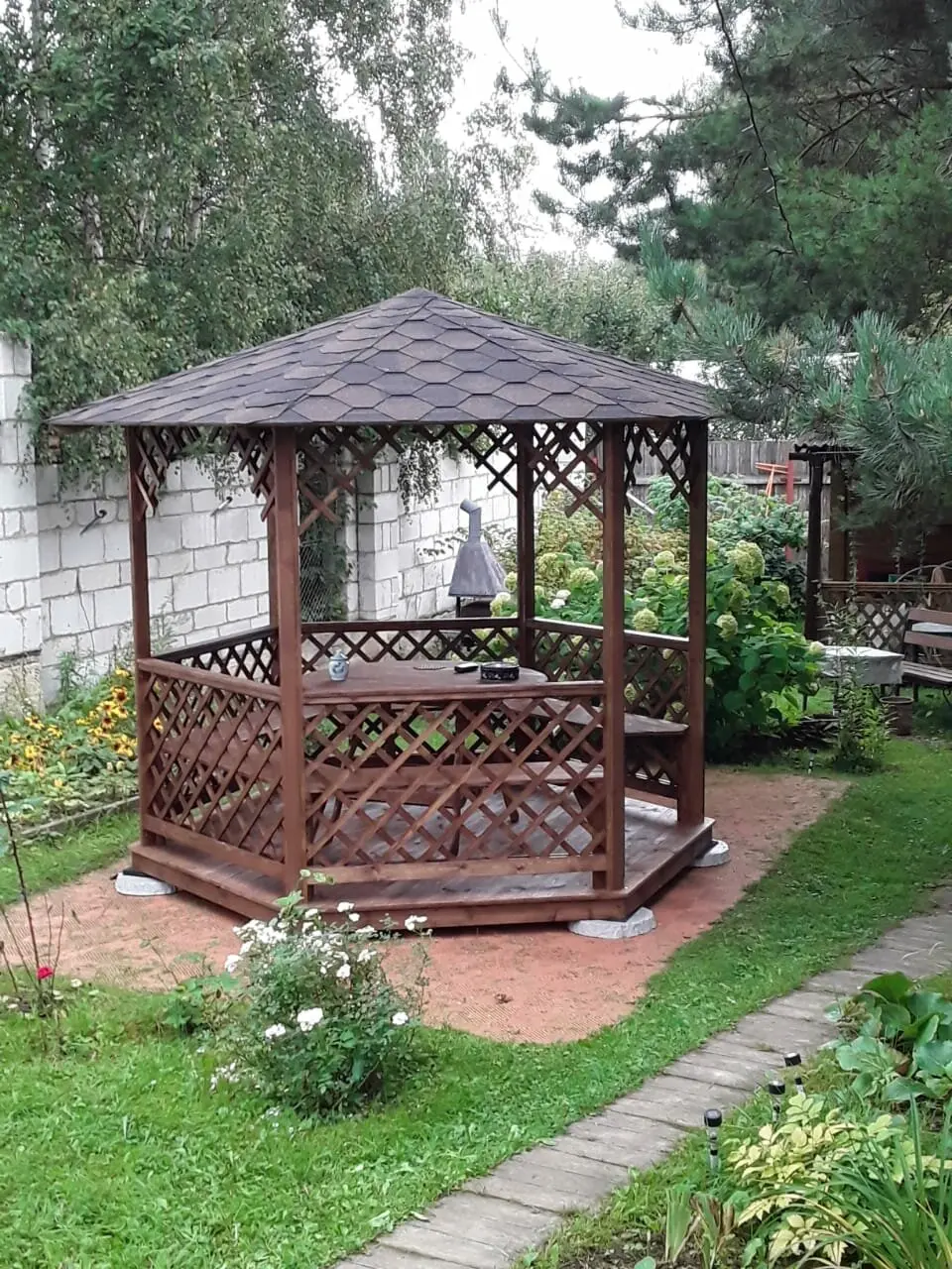 Построили нам и беседку, и гриль-домик. Быстро и красиво. Размышляем, что бы ещё у них купить.