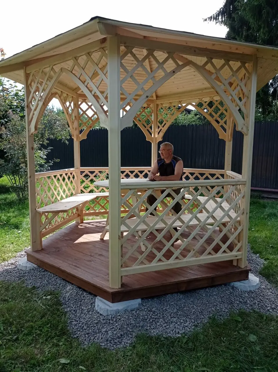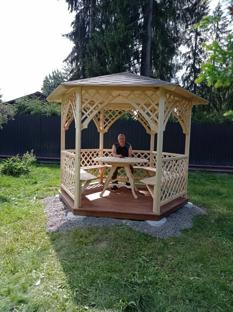 Обратилась в «Садовые беседки», после просмотра сайта и предварительно визуально выбрав модель «Зодчий» , с дополнительными глухими стенками, менеджер Виктория ответила на все интересующиеся вопросы, порекомендовала улучшения беседки, очень грамотный сотрудник!!!!!, постоянно на связи, детально объясняет все этапы заказа, очень оперативно составила прайс, предложила удобное для нас (что очень важно) дату доставки. В назначенный день приехала бригада и все комплектующие беседки ( все детали очень хорошо упакованы), сборщики с бригадиром Алексеем настолько оперативно и тщательно работали, создалось впечатление , что все движения отработаны до автоматизма, ни на минуту не отвлекаются. По окончании сборки, мы были приятно удивлены результатом, така как на картинке видеть и представлять это одно, а вживую на своём участке, это другое))) Беседка выше всяческих похвал!!!! Очень удобный и большой стол, по периметру всей беседки лавки. Теперь ещё приятней собираться большой компанией в такой уютной, качественной и красотой беседке))))