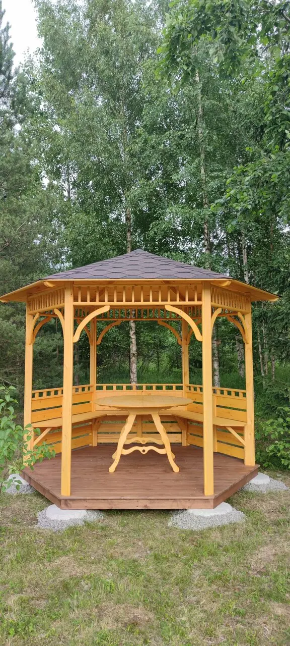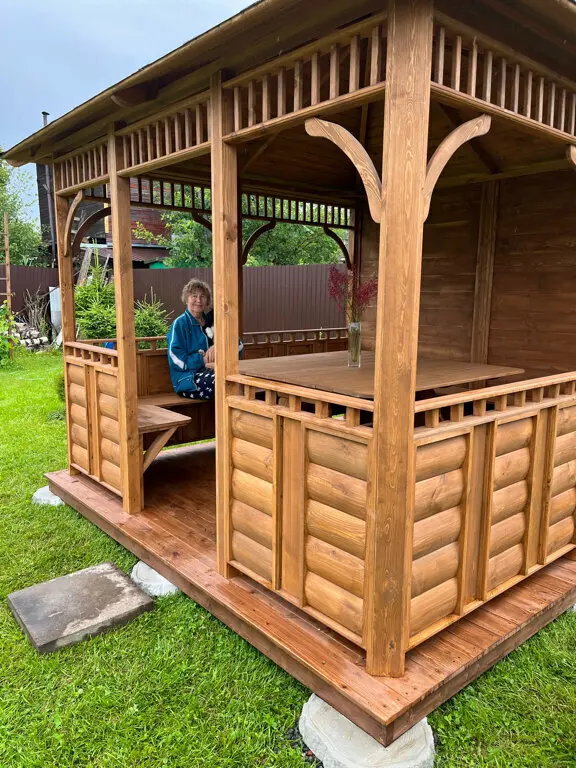 Спасибо большое всему коллективу. Все сработали слаженно и профессионально. Объяснили, рассказали, порекомендовали и как результат- замечательная беседка!!!Нам очень понравился результат. Повезло с бригадой. Ребята приехали вовремя, работали слаженно и быстро. После себя всё убрали и рассказали, что нужно делать, что бы эта красота радовала нас долгие годы.