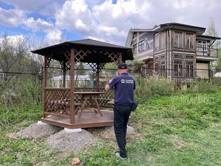 Мастера приехали вовремя. Работали слаженно, быстро, грамотно и профессионально. Даже дождь не испугал). Беседка смотрится классно, как будто всегда там стояла)